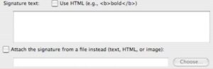 Enter the text you want to include in your signature – if using HTML tick the ‘HTML’ box above the signature box. If you have a HTML signature template file, you can upload this from your computer in the upload section under the signature input box.